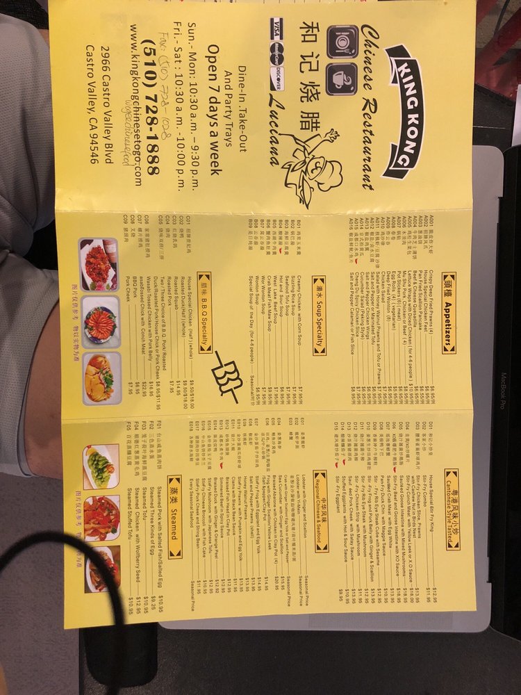 King Kong Chinese Restaurant in Castro Valley, CA offers a diverse menu with a variety of options for appetizers, soups, and BBQ specialties. Their Crispy Deep Fried Prawns and Lettuce Wraps with Diced Chicken are delicious starters. The Creamy Chicken with Corn Soup and Seafood Tofu Soup are flavorful and comforting choices. For BBQ lovers, the House Special Chicken and Roasted Pork are must-try dishes. The restaurant provides vegan and vegetarian options, and their gender-neutral restrooms and wheelchair accessibility make it inclusive for all. With options for delivery, takeout, and catering, King Kong Chinese Restaurant is a convenient choice for a relaxed dining experience with friends and family. The welcoming atmosphere, good service, and delectable dishes make it a standout Chinese restaurant in the area.
